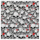 Machen Sie und fantastischer Bandana! Oder gerade ein cooles Shirt der Weise! Wiederholen des Musters der verärgerten Schädel auf einem unbedeutenden roten Hintergrund.