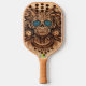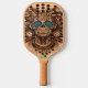 Ein Pickleball-Paddle mit einem aufwändig gravierten Schädel, umgeben von lebhaften Blume und schafft ein einzigartiges künstlerisches Design.