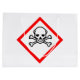 Dieses Design weist ein Gefahrensymbol auf, das einen Schädel und Kreuzknochen zeigt, das eines der Piktogramme des global harmonisierten Systems zur Einstufung und Kennzeichnung von Chemikalien (GHS) für giftige Stoffe ist. Das Symbol für Schädel und Kreuzknochen scheint mindestens seit den 1850er Jahren zur Kennzeichnung von Behältern mit giftigen Stoffen verwendet worden zu sein.