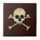 Diese Keramikfliese zeichnet sich durch einen Schädel und Kreuzknochen aus.