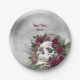 Schädel und Rose Burgund Maroon Grau Personalisier Pappteller