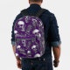 Ein gotischer Lila und grau / grauer Skulls und Rose Rucksack. Ein schöner gotischer Rucksack für alle Schüler, die zurück zur Schule gehen. Der Name kann bei Bedarf personalisiert werden - in Initialen wechseln oder wenn er nicht gewollt wird, kann er gelöscht werden.