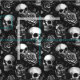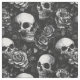 Ein gotisches Skulls und Rose Halloween-Stoff. Das Design beinhaltet Skulls und Rose auf schwarzem Hintergrund. Fantastisches gotisches Muster für Wohngestaltung-, Krebs-, Näh- und Quiltierprojekte.