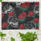 Schädel und Rote Rosen | Modern Gothic Glam Grunge Geschirrtuch
