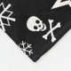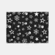 Schädel und gekreuzte Knochen mit hübschen Schneeflocken und Sternen gegen einen schwarzen Hintergrund.