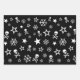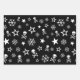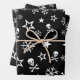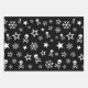 Schädel und Kreuzknochen mit hübschen Schneeflocken und Sternen auf schwarzem Hintergrund.