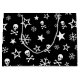 Schädel und gekreuzte Knochen mit hübschen Schneeflocken und Sternen gegen einen schwarzen Hintergrund.