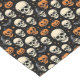 Orangefarbene und Elfenbeinschädel, verstreut mit Jack o'lanterns, Fledermäusen und Sternen, sorgen zu Halloween für ein niedliches und lustiges Tischdecken.