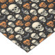 Orangefarbene und Elfenbeinschädel, verstreut mit Jack o'lanterns, Fledermäusen und Sternen, sorgen zu Halloween für ein niedliches und lustiges Tischdecken.