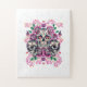 Schädelblume, Skelett Aquarellfarbe Rosa, Hallowee Puzzle