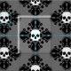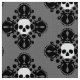 Stoff zu Halloween in Grau, Schwarz und Weiß. Das ist ein elegantes Schädel-Damast-Muster.