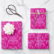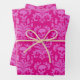 Schädelflammdamast in Bubblegum rosa auf heiß rosa Geschenkpapier Set