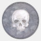 Handgemalte Schädelmuster über dem Stapel von Schädeln auf lila Aquarellhintergrund