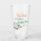 Glas für die beste Mutter. Der sonnige Cartoon eines Schafes auf einem Hügel. Das Schaf sagt "Best Mother Baaa None". Design wiederholt sich auf beiden Seiten. Bier Glas für Mutter am Muttertag oder Mutter Geburtstag vielleicht.