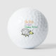 Golfball für einen Golfer. Der sonnige Cartoon eines Schafes auf einem Hügel. Das Schaf sagt "Best Baa None". Design-Wiederholungen auf beiden Seiten