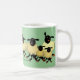 Viele Schwarzweiss-Schafe des niedlichen Cartoon auf einer grünen Tasse. Ändern Sie die Farbe des Hintergrundes, um ihn zum Anzug zu personifizieren Ihr Geschmack.