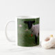 Foto eines Schafs mit einem Lamm, in einer niederländischen Wiese.