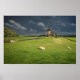 Schafe mit Windmühlen unter dunklen Wolken Poster