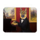 Dieses Design ist mit dem Deutschen Schäferhund elegant gekleidet, der in einem schwarzen, schwarzen Fell, weißem Shirt, in der Nähe des Klaviers, an einer roten Wand mit Gemälden in goldenen Rahmen gekleidet ist.