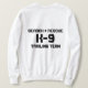 Such- und der Rettungschleppendes Team mit einem Schäferhund, der über die Front trottet