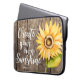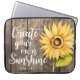 Hübscher Blumenlaptopkasten, der Watercolorsonnenblume mit inspirational Zitat kennzeichnet. Das motivierend Zitat sagt, dass "schaffen Sie Ihren eigenen Sonnenschein." Der Hintergrund ist hölzerne Beschaffenheit. Rustikaler und Landentwurf. Fertigen Sie dieses Produkt besonders an, indem Sie Ihren Namen an der Unterseite addieren.