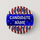 Benutzen Sie diese einfache DIY Fülle-in-d-leere Schablone, um Ihr eigenes USA politische 2016 zu machen Präsidentenwahlknopf. Der Knopf hat ein US Flaggeflaggen-Hintergrundthema in den Schatten des Rotes, des Weiß und des Blaus. Der Text sagt, Abstimmung für [der Name Ihr Kandidaten] 2016.