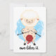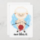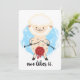 Niedliche Schafe, die Stricknadeln halten und die Wolle aus seinem Körper für Ihre Prezzie auf dieser Weihnachtskarte "handgefertigt mit Liebe" verwenden, die sich perfekt eignet, um Ihre Liste mit handgearbeiteten Strickgeschenken zu versehen.