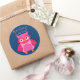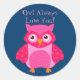 Liebe mit dem Valentinumsticker, glänzend. Sie können den Text, die Hintergrundfarbe oder die Form dieses niedlichen Eule Valentinstag-Aufklebers leicht ändern!