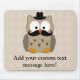 Diese niedliche kleine Eule ist mit ihrem schwarzen Dressurhut und dem schwarzen handlebar Schnurrbart so hübsch. Großartiges Geschenk für den Schnurrbart, oder kleinen männlichen Jungen, oder nur für jeden, der niedliche Eulen und tierische Cartoons mit lustigen Gesichtern schätzt. Sandbrauner Hintergrund und braune Eule mit orangefarbenem Schnabel. Alle Designs Copyright © 2012 www.CuteComfy.com