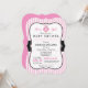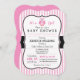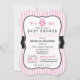 Es ist ein Mädchen! Niedliche, elegante Rosa- und Schwarz-Eule-Babydusche laden mit Vintagem formellen Look auf hellpastellrosa Streifen ein. Ideal für Eule, bewaldete Tiere Thema Babyduschen. Einladung zur runden Klammer.