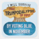 Reads: "Ich werde die Trumpokalypse von 2017 überleben, indem ich im November Blue votiere"