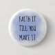 Anstatt es zu Fake, bis du es schaffst, vertraue es, bis du es schaffst. Jedes Mal, wenn du diesen Knopf ansiehst, lass, es sei eine Erinnerung, dass du es mit Glauben an den Herrn durchmachst. Auf einem hellblauen, kreisförmigen Hintergrund steht "Faith It Till You Make It".