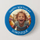 Anpassbare Foto und nennen glücklichen Geburtstag Schaltfläche. Blauer Rahmen mit weißem Text.