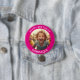 Anpassbare Foto und nennen glücklichen Geburtstag Schaltfläche. Heiß rosa Rahmen mit weißem Schriftart.