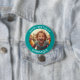 Anpassbare Foto und nennen glücklichen Geburtstag Schaltfläche. Aquamariner Rahmen mit weißem Text.