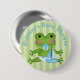Passen Sie diesen niedlichen Knopf mit dem Namen Mama an. Der Spielknopf hat einen kleinen Frosch, der einen Schnuller sind zum Kotzen und mit einem Segelboot spielt. Der Hintergrund ist grüner Streifen. Große Babydusche für alle Ihre Gäste. Graphicsandbits/kristiw