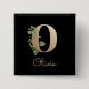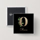 Eleganter schwarzer Knopf mit einem goldenen botanischen Monogramm in der Mitte.