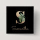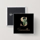 Eleganter schwarzer Knopf mit einem goldenen botanischen Monogramm in der Mitte.