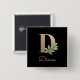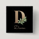 Eleganter schwarzer Knopf mit einem goldenen botanischen Monogramm in der Mitte.