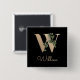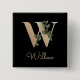 Eleganter schwarzer Knopf mit einem goldenen botanischen Monogramm in der Mitte.