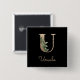 Eleganter schwarzer Knopf mit einem goldenen botanischen Monogramm in der Mitte.