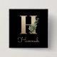 Eleganter schwarzer Knopf mit einem goldenen botanischen Monogramm in der Mitte.