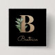 Eleganter schwarzer Knopf mit einem goldenen botanischen Monogramm in der Mitte.