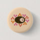 Dieser Knopf zeigt einen niedlichen Cartoon eines kleinen braunen spitzen Igels, der in einem Ball aufgerollt ist, der schläfrig aussieht. Der Igel ist von hübschen Blume umgeben. Der Igel ist braun, die Blume sind rot, orange und rosa.