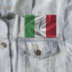 Button mit der Fahne von Italien in gewelltem Stoffdesign. Dieses Design zeichnet sich durch die italienischen Fahnen Farben und Design mit einem schönen Wellenstoff Texturierten Effekt aus. Dieses Flaggendesign ist eine großartige Möglichkeit, Ihnen zu zeigen, dass Sie stolz sind, aus Italien zu sein.