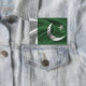Button mit der Flagge von Pakistan in gewellter Stoff Stil Design. Dieses Design besticht durch die pakistanischen Fahnen-Farben und das Design mit einem schönen, winkenden, texturierten Effekt. Dieses Flaggendesign ist eine großartige Möglichkeit, Ihnen zu zeigen, dass Sie stolz sind, aus Pakistan zu sein.