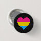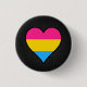 Klassischer Round Button mit Herzdesign in den Farben der Pansexualität; Rosa, gelbe und blaue Streifen, Stolperflagge, Liebe des Regenbogens