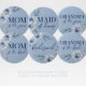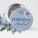 Persönliches aufmerksames Blue Brautparty Button auf Button. Die Blume sind in einem hellblau-schieferblauen Hintergrund mit schönen, eleganten, staubblauen gehalten. Karo die anderen passenden Knöpfe in der Kollektion für andere wichtige Gäste wie Trauzeugin, Braut zu sein, Brautjungfrau und mehr!