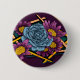 lustige alte Schule Stil Tattoo Illustration einer blauen Rose und rosa Tags auf einem Knopf.