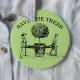 Vintage Abbildung zweier Männer mit einem jungen Baum in einem Topf + eine traditionelle Schrift (nicht anpassbar): "Rett die Bäume". Der perfekte Knopf für die tägliche Sache der Erde. Schaltfläche Anpassbar. Sie können die Hintergrundfarbe, Größe und Position des Bildes ändern, indem Sie auf die Schaltfläche Anpassen klicken.